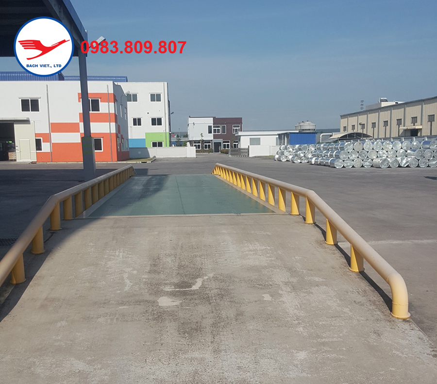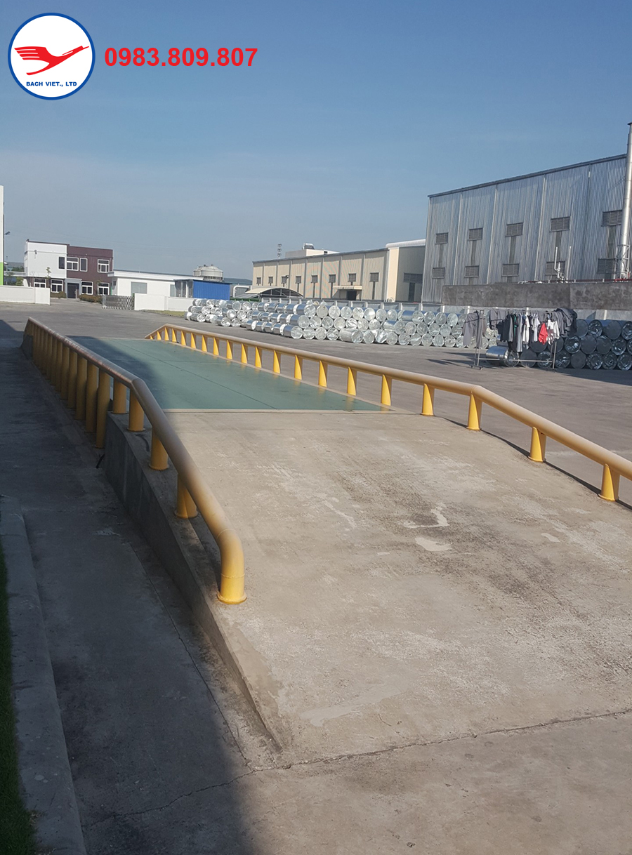 Mặt sàn cân cao hơn mặt sân khoảng 50cm, điều đó cần phải thiết kế dốc lên xuống đảm bảo tốt nhất cho các loại xe tải lên xuống dễ dàng nhất. Dốc được được thiết kế cùng khi thiết kế móng, nó được kết nối trực tiếp với móng cân để đảm bảo được độ chắc chắn tuyệt đối cao.