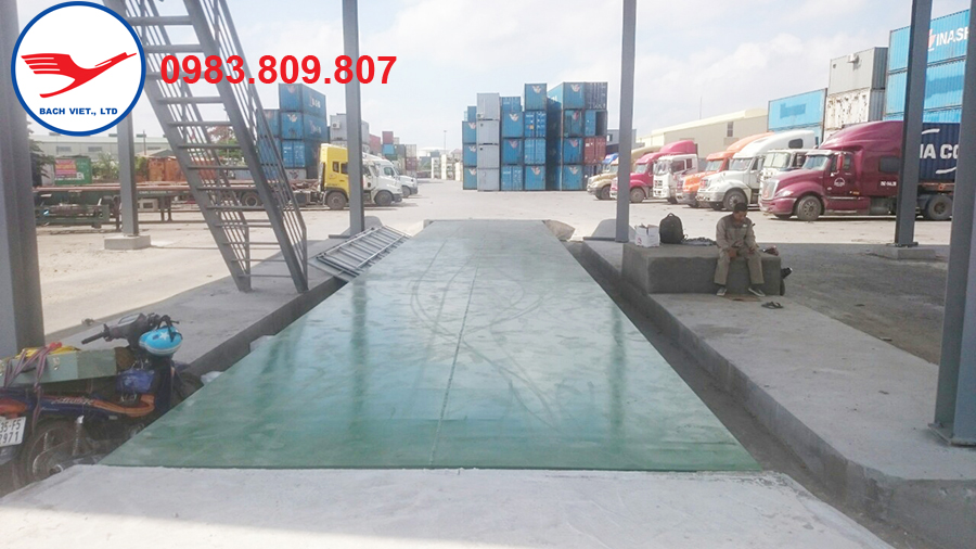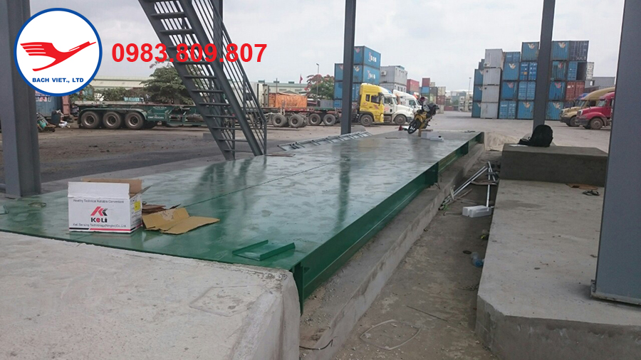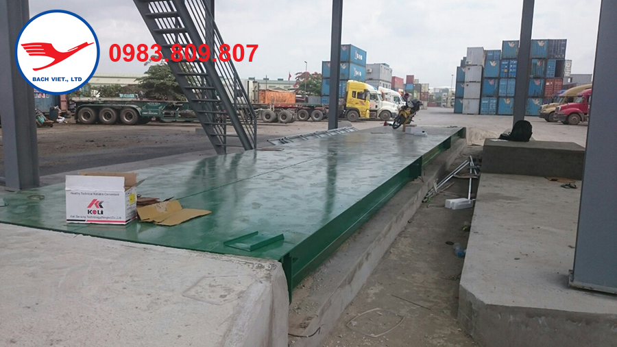 Hình ảnh cầu cân ô tô điện tử 120 tấn loại cầu cấu tạo từ thép I350 đúc được lắp đặt tại cảng Đình Vũ Hải Phòng.