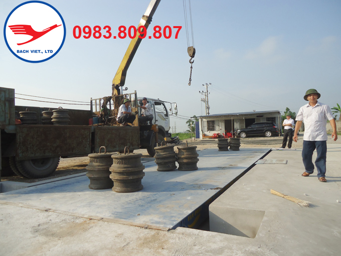 Trạm cân ô tô điện tử tại Kinh Dương, Hải Phòng dài 10m rộng 3m, 2 nhịp cầu dạng chìm