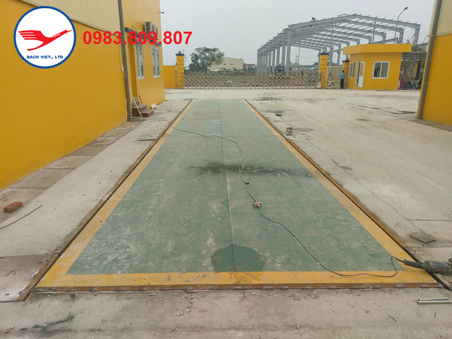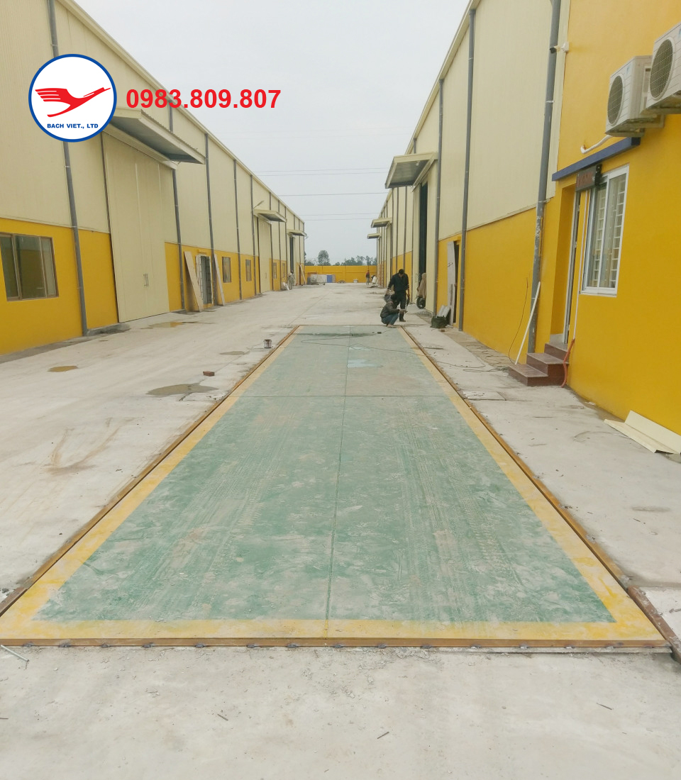 Hình ảnh 3: Đây là công đoạn cuối cùng trong việc lắp đặt cầu cân ô tô điện tử. Cân được thiết kế theo kiểu cầu cân ô tô chìm. Đây là kiểu rất phổ biến trong các nhà máy, khu công nghiệp chế biến, sản xuất có không gian, diện tích lắp đặt cân hẹp.