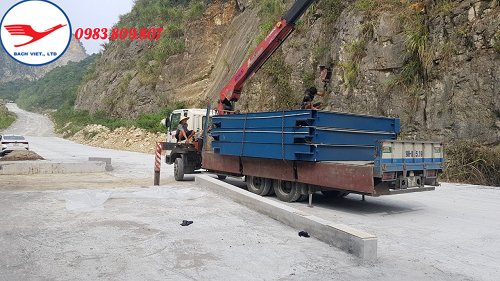 Hình ảnh cẩu, vận chuyển bàn cân đến chân công trình: